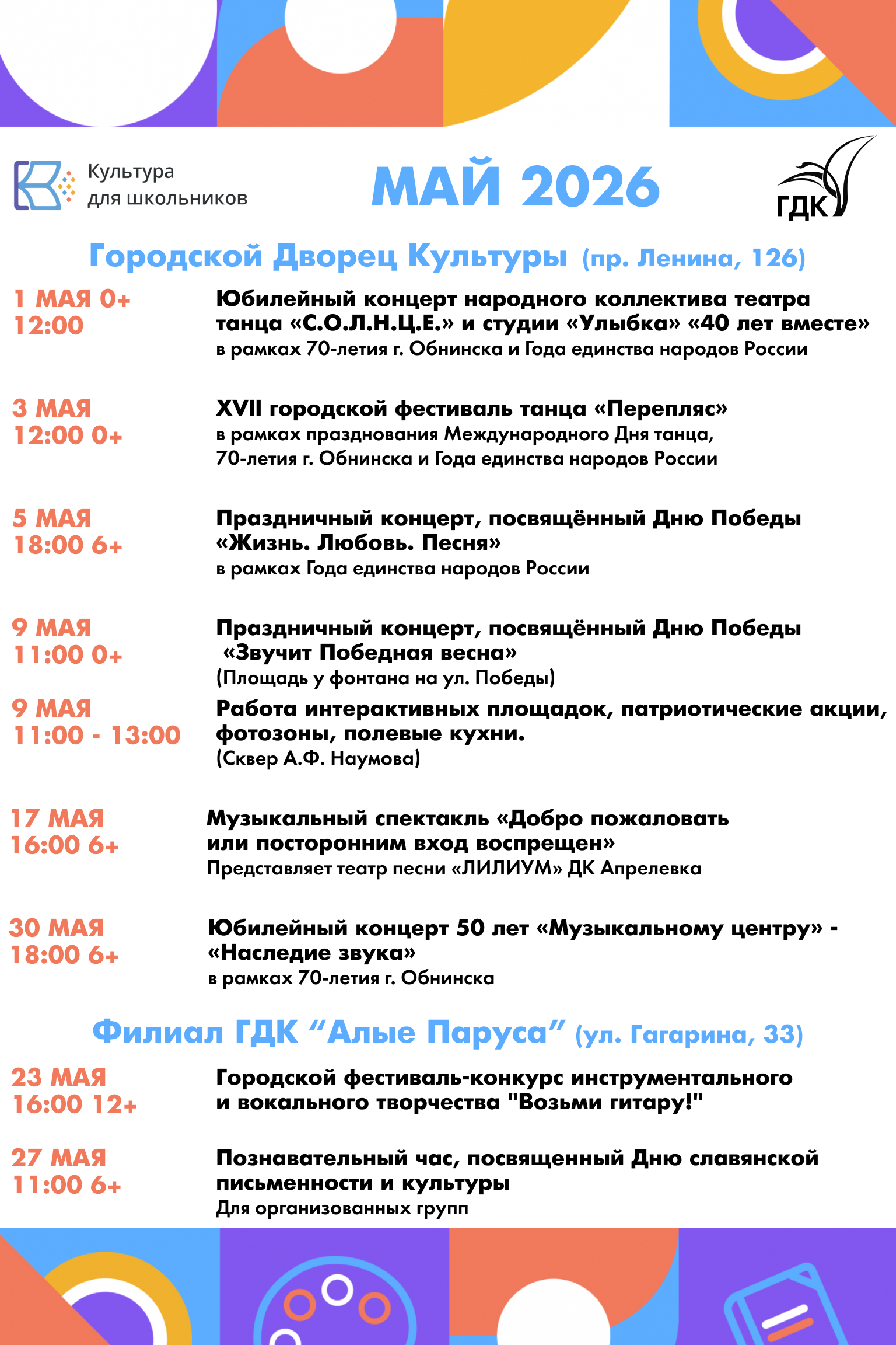 ВОКАЛ (сольные, групповые номера, посвящённые Обнинску, Калужскому краю, многонациональной стране, празднику - юбилею города);